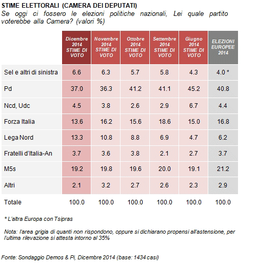 Questo il sondaggio Demos & Pi commissionato da Repubblica.
