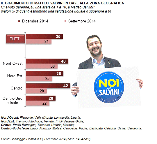 Il gradimento di Renzi è cresciuto fra gli elettori di Forza Italia. E fra gli indecisi. Crolla FI ma avanza Salvini e con lui la Lega. Il Movimento cinque stelle resta attestato oltre il 19%.