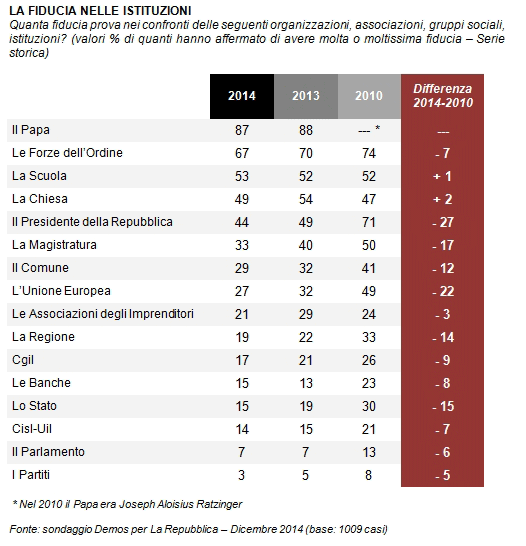 Indagine Demos per Repubblica