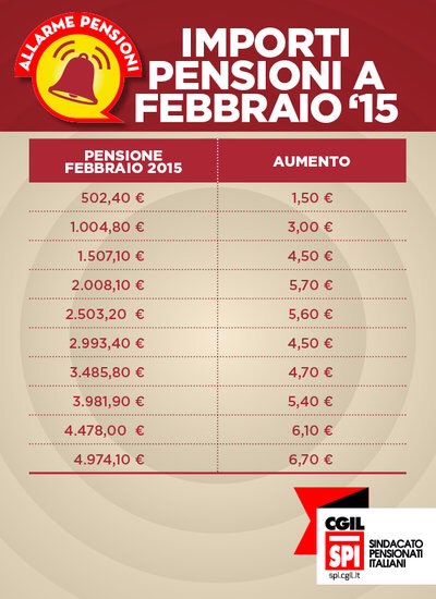 Questa la dinamica degli importi pensionistici a febbraio 2015: