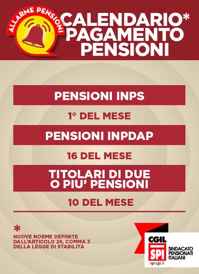 Quelli Inps saranno liquidati il 1° del mese mentre quelli Inpdap il 16, così come è avvenuto fino ad oggi.