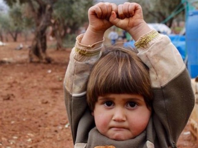 Un volto di bimba con lo sguardo angosciato e quasi adulto, la piega delle labbra all’ingiù e quelle manine alzate tipiche di chi si arrende: è lo scatto che sta facendo il giro del web, divenendo il simbolo di una guerra terribile. Tra scuole e orfanotrofi bombardati si stima che siano 5 milioni i bambini siriani coinvolti nella guerra del regime di Bashar Al Assad contro i terroristi dello Stato islamico. E quella piccola di appena 4 anni, condivisa su tutti i social, sta diventando il triste simbolo di questo ennesimo orrore.