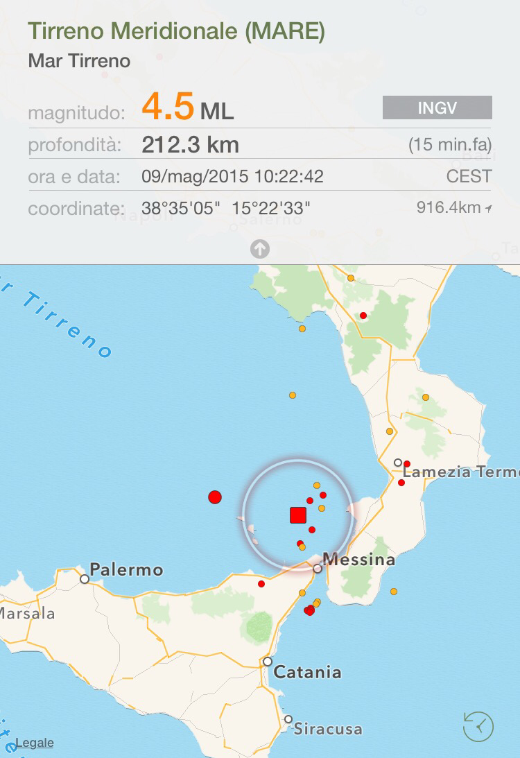 Alle 10.22 l’INGV ha registrato un sisma di magnitudo 4,5 al largo delle coste calabresi.
