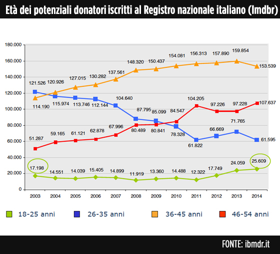 I numeri si riferiscono al 2014 e sono del Registro italiano donatori di midollo osseo del Galliera di Genova. È qui che vengono inseriti i nomi di tutte le persone che intendono mettere a disposizione le proprie cellule. Problemi economici e di conseguenza anche organizzativi fino ad oggi hanno impedito al sistema italiano di decollare e si spera che grazie a un fondo nazionale dedicato da 3 milioni di euro le cose migliorino. Non si tratta di molto denaro e non è detto che basti. Il rischio è di continuare ad avere un imbuto, con potenziali donatori che non vengono tipizzati per carenza di fondi. Oltretutto fino a ora questa operazione veniva fatta in sedi diverse, tra l’altro con costi diversi. E invece si vorrebbe tipizzare in una sede sola.