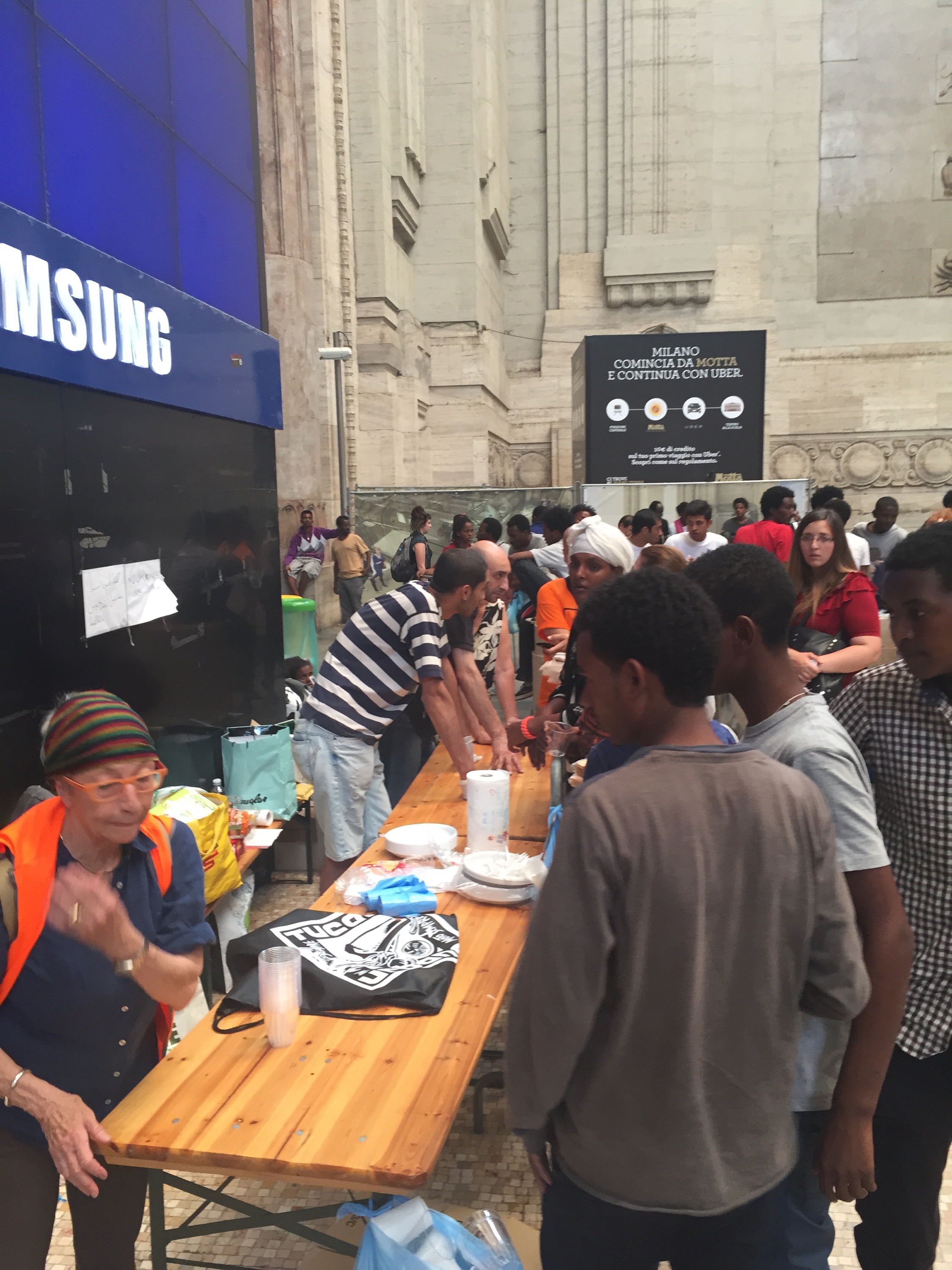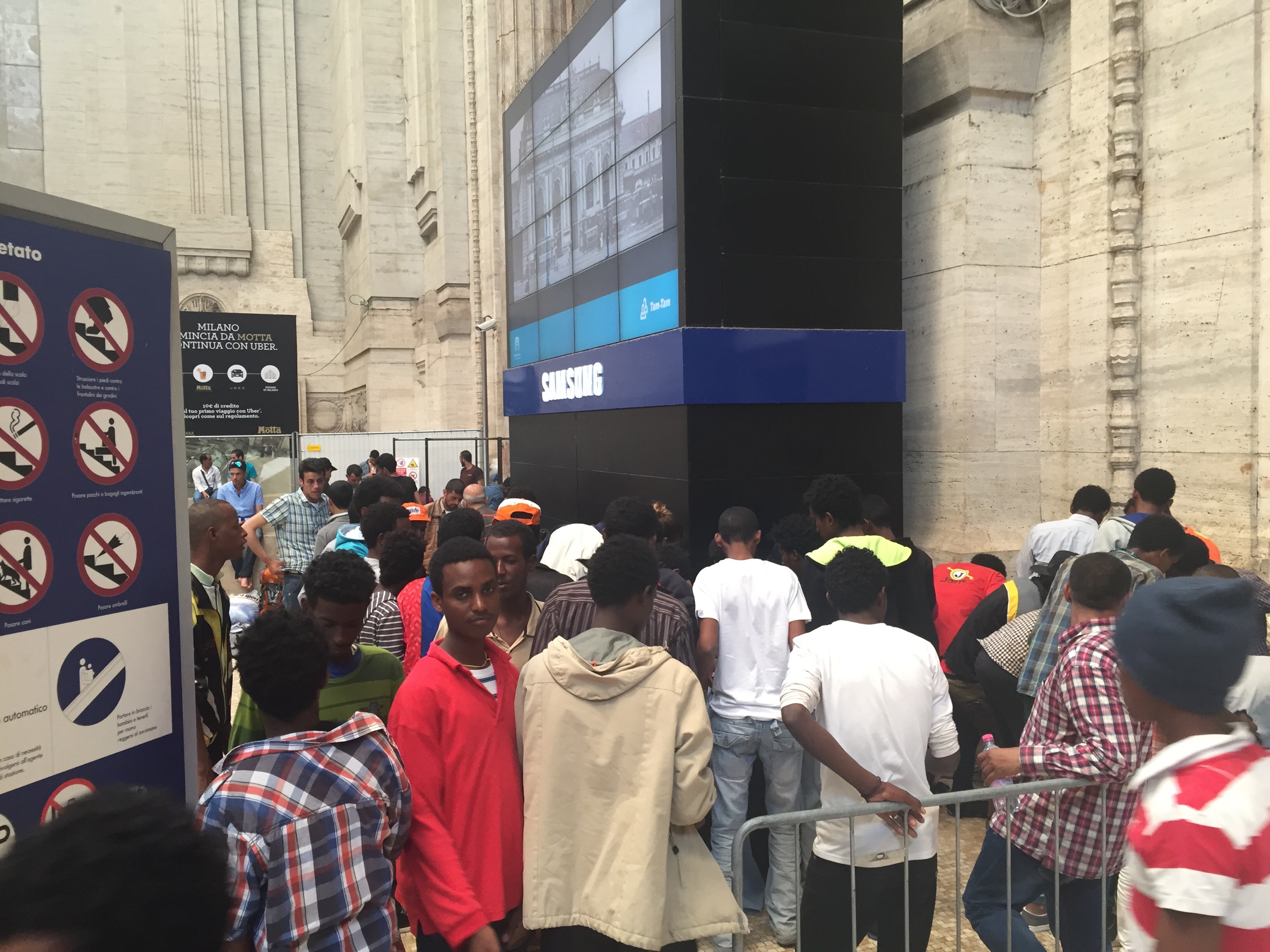 Uomini, donne, bambini, malati e anziani, provenienti in gran parte dalla Libia, ammassati come bestie dentro la Stazione, sui gradini o sotto il sole cocente di questi giorni.