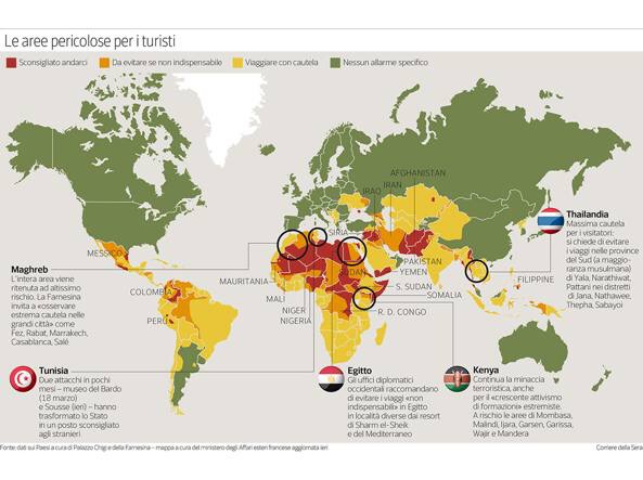ROMA – Il segnale di allarme per i servizi di intelligence occidentali era arrivato tre giorni fa con un messaggio trasmesso via Internet dal portavoce dell’Isis Abu Mohammed al-Adnani. L’avvertimento era fin troppo chiaro: «Il gesto migliore per avvicinarvi a Dio è la jihad, quindi sbrigatevi a farlo durante questo mese e siate pronti al martirio». Gli attacchi in Tunisia, in Francia e in Kuwait certamente erano già stati pianificati, ma adesso è questa esortazione così esplicita a far temere che non sia finita, che altri attentati possano essere già stati progettati. Ma anche che si possa scatenare l’emulazione, come del resto è già accaduto nel recente passato. E allora l’Italia potenzia ulteriormente la sorveglianza – già al livello massimo dopo la strage di Parigi nella redazione di «Charlie Hebdo» e al mercato Kosher – impiegando l’esercito per nuovi possibili obiettivi. Soprattutto aggiorna la lista delle mete turistiche ritenute particolarmente a rischio.