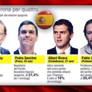 L’unica coalizione che matematicamente garantirebbe i 176 seggi è una ‘grosse-koalition’ alla tedesca fra Pp e Psoe, già da tempo ipotizzata per garantire la stabilità del paese dall’ex-premier socialista Felipe Gonzalez. Lo stesso Rajoy venerdì per la prima volta non ha escluso categoricamente questa ipotesi. “Semmai ne parleremo lunedì” aveva detto. La formazione del nuovo governo di Madrid sarà con ogni probabilità lunga e laboriosa. Le ipotetiche coalizione di centro-destra Pp-Ciudadanos o di centro-sinistra Psoe-Podemos supererebbero rispettivamente 162 e 160 deputati. Per riuscire a ottenere l’investitura sarebbe necessario l’appoggio di deputati dei partiti nazionalisti, catalani o baschi, che diventerebbero un problematico ago della bilancia e farebbero pagare a caro prezzo il loro voto. Dopo le scintille fra Rajoy e il presidente secessionista catalano Artur Mas sembra difficile che i catalani possano offrire una stampella a un governo Pp. Ma queste elezioni sono soprattutto una vittoria del ‘nuovo’ in politica, in particolare di Podemos. I due partiti anti-casta formati un anno fa irrompono in parlamento con 109 deputati su 350 e provocano uno tsunami politico. Sono determinati a restare prendendo il posto, e mandando progressivamente in pensione, i ‘vecchi’ Pp e Psoe, come Tsipras e Syriza hanno fatto in Grecia con lo storico Pasok. Pablo Iglesias questa notte soddisfatto ha annunciato la nascita di una “nuova Spagna”.