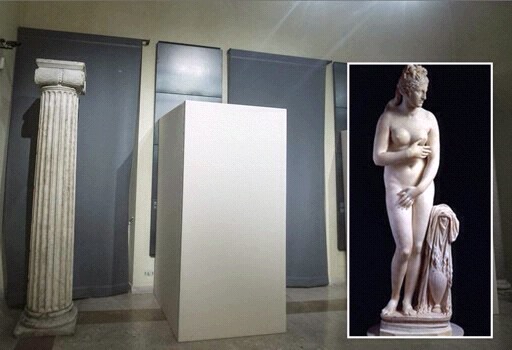 Addio levigata, marmorea Venere Capitolina ammirata per secoli lassù in Campidoglio nei Musei Capitolini. Alcuni severi scatoloni di compensato dipinti di bianco hanno nascosto alla vista del presidente iraniano Hassan Rouhani quel capolavoro, copia romana dell’originale di Prassitele, ritrovata nel 1666 intorno alla basilica di san Vitale e poi introdotta da papa Benedetto XIV nelle collezioni capitoline nel 1752.