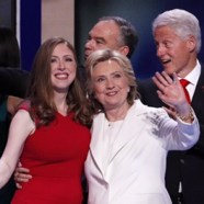 Le proteste temute non ci sono state. Lo stesso Bernie Sanders, poco prima l’ingresso di Hillary sul palco, avrebbe invitato nuovamente il suo popolo a non manifestare in sala, per non rovinare la festa e soprattutto per non dare l’immagine di un partito spaccato. A presentare l’ex segretario Chelsea Clinton, ”figlia orgogliosa” che chiede di votare per la madre. Hillary la segue da dietro le quinte, su uno schermo. Sul palco si abbracciano, poi Chelsea le lascia la scena.
