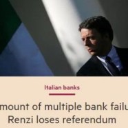 “Renzi – continua Ft – ha promosso una soluzione di mercato per risolvere i problemi da 4.000 miliardi di euro del sistema bancario italiano”. E nel caso di dimissioni di Renzi i banchiere temono “la protratta incertezza durante la creazione di un governo tecnico”. Secondo il Financial Times gli otto istituti a rischio sono Monte dei Paschi di Siena, la Popolare di Vicenza, Carige, Banca Etruria, CariChieti, Banca delle Marche e CariFerrara.