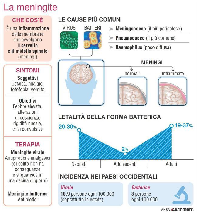 Meningite: morto un bimbo di 22 mesi a Firenze. Grave una donna a ChiavariConfermata la diagnosi anche per il 18enne morto a Castellammare di Stabia. Grave donna in Liguria: la trentaquattrenne di origini peruviane sarebbe in condizioni critiche
